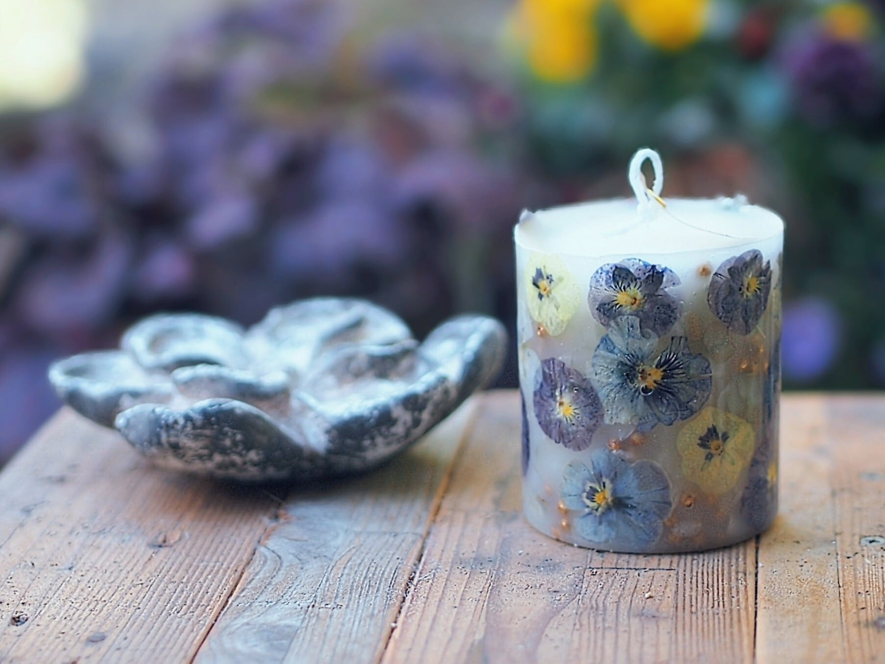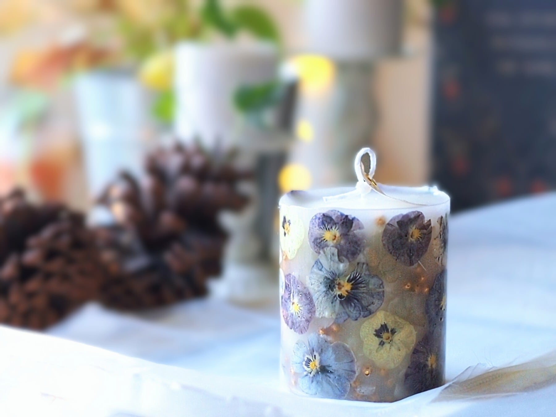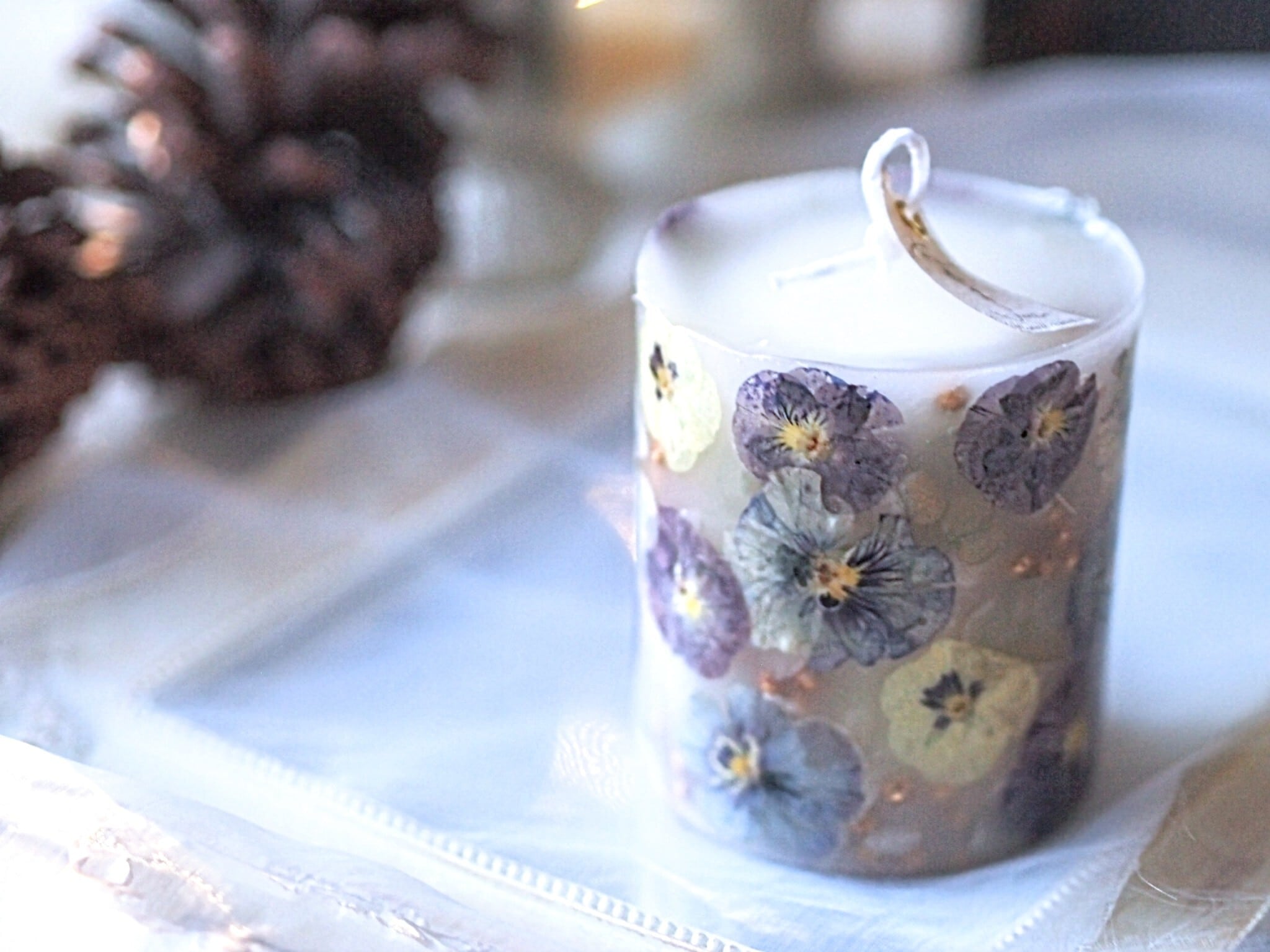 パンジー&ビオラのボタニカルアロマキャンドル(ラベンダー精油の香り)