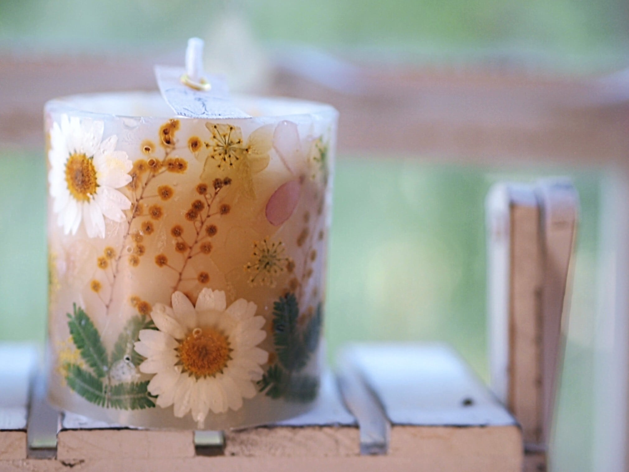 ミモザのボタニカルキャンドル(無香料、ムーンストーン付)